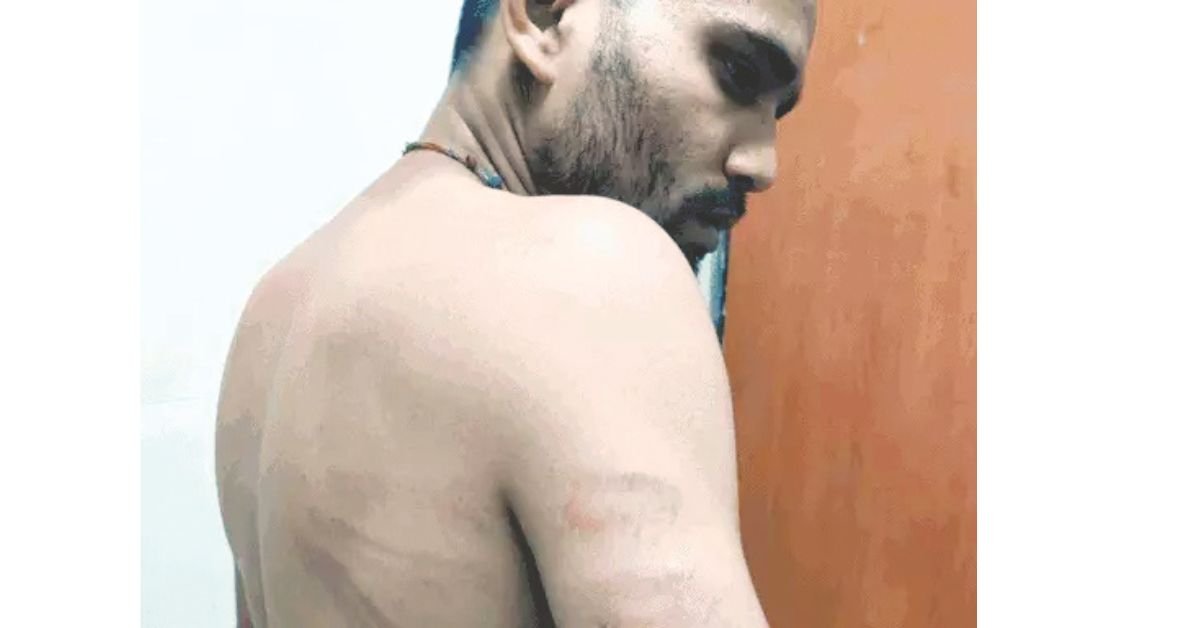 मैं गुरुवार सुबह 6 बजे बैंक के बाहर जाकर खड़ा था। वहां धक्का-मुक्की हुई। पुलिस वाले चौकी ले गए और बेल्ट से पिटाई शुरू कर दी। उसके पूरे शरीर पर बेल्ट के निशान हैं। जो पुलिस की क्रूरता साबित कर रहे हैं।