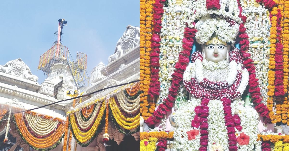 चिंतामणि पारसनाथ मंदिर के शिखर पर चढ़ी ध्वजा
