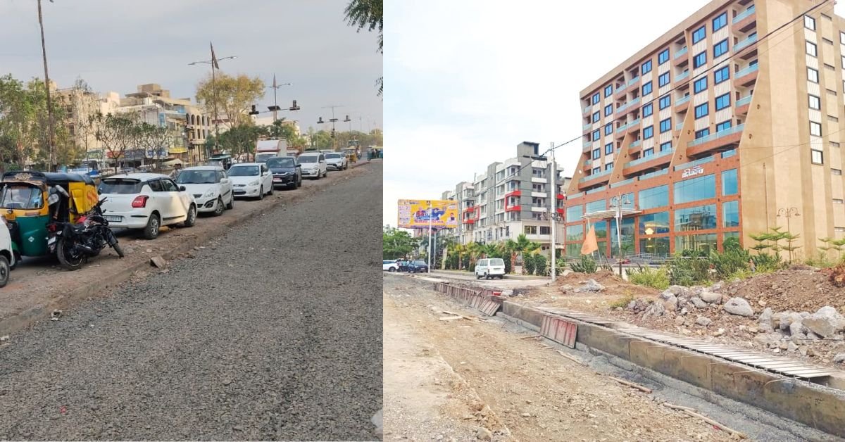नानाखेड़ा में सी-21 मॉल के सामने चार माह से खोदी सड़क अब तक नहीं बनी, स्ट्रीट लाइट भी बंद