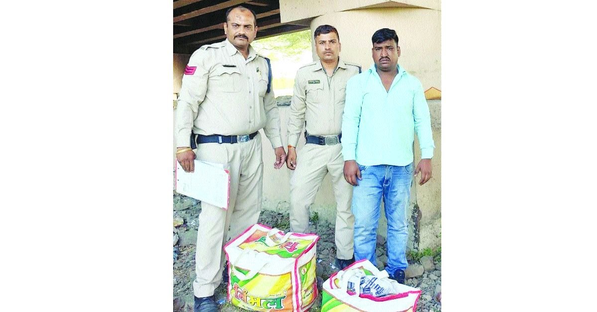 तलाशी में दोनों झोलों से देशी प्लेन शराब के ३१६ क्वार्टर मिले। पूछताछ में उसने अपना नाम राहुल पिता राजू रायकवार निवासी एके बिल्डिंग चौराहा के पास, फ्रीगंज बताया। उसके खिलाफ आबकारी एक्ट में प्रकरण् दर्ज किया गया है।