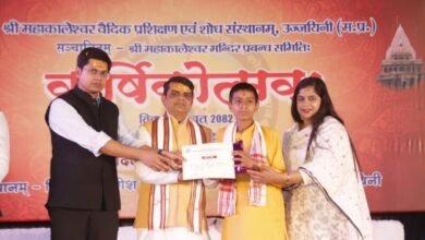 उज्जैन। श्री महाकालेश्वर मंदिर में शिव नवरात्रि उत्सव के चौथे दिन आस्था और श्रद्धा का अनूठा संगम देखने को मिला। सोमवार को बाबा महाकाल का घटाटोप स्वरूप में मनमोहक शृंगार किया गया। इस दिव्य रूप के दर्शन पाने के लिए बड़ी संख्या में श्रद्धालु उमड़े। उत्सव के चौथे दिन परंपरा के अनुसार मंदिर प्रांगण स्थित कोटितीर्थ कुंड के तट पर सुबह श्री कोटेश्वर महादेव का पूजन-अभिषेक हुआ। इसके बाद मुख्य पुजारी पं. घनश्याम शर्मा के आचार्यत्व में 11 ब्राह्मणों ने सस्वर रुद्रपाठ किया और भगवान महाकाल का विधि-विधान से अभिषेक कर विश्व कल्याण की कामना की। दोपहर 3 बजे के बाद संध्या पूजन की प्रक्रिया शुरू हुई। अभिषेक के बाद भगवान महाकालेश्वर को नवीन और रेशमी परिधान धारण करवाए गए। गर्भगृह को गुलाब से सजाया गया है। मंगलवार को श्री श्री छबीना स्वरूप में बाबा श्रद्धालुओं को दर्शन देंगे।