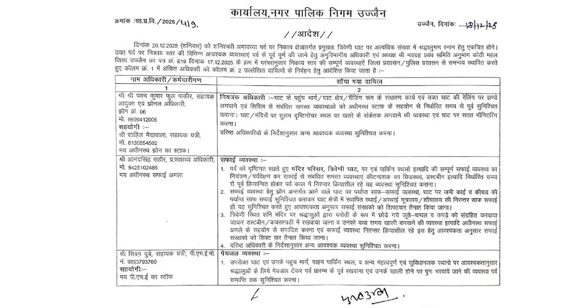 अक्षरविश्व न्यूज उज्जैन। शहर में प्रशासन किस तरह काम कर रहा है, अधिकारियों के बीच आपसी समन्वय की किस हद तक कमी है, इसकी एक ताजा बानगी देखने को मिली है। यह घटनाक्रम साफ बताता है कि जिले में बाबूओं की टेबल पर कट-कॉपी- पेस्ट से व्यवस्था संचालित हो रही है और फील्ड के स्तर पर हकीकत क्या है कोई जानना ही नहीं चाहता। मामला त्रिवेणी घाट पर स्नान व अन्य व्यवस्थाएं जुटाने की तैयारी से जुड़ा है। शनिवार 20 दिसंबर को शनिश्चरी अम्मावस्या का स्नान पर्व माना ही नहीं गया है इसके बाद भी अधिकारियों की ड्यूटी लगा दी गई, साथ ही उन्हें हिदायत भी दी गई कि सारी व्यवस्था चाक-चौबंद हो जाना चाहिए।