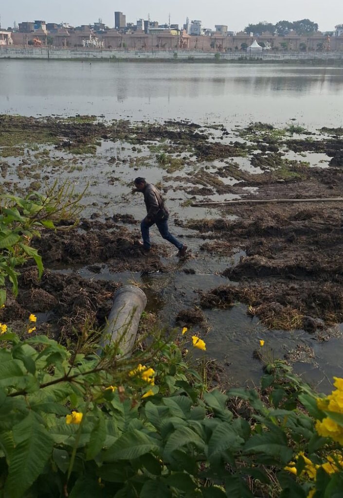 पुलिस ने ड्रोन से निगरानी शुरू की। कोई पक्षी ड्रोन से टकराया। ड्रोन रुद्रसागर में समा गया। कर्मचारी उसे ढूंढते रहे।