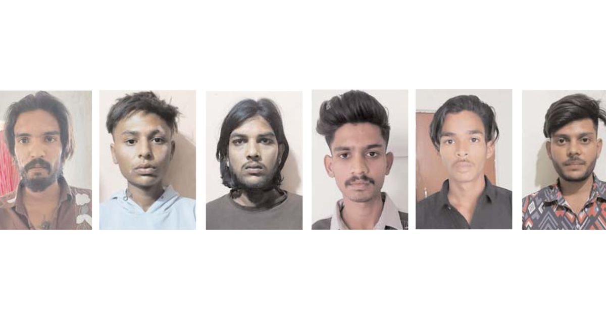 उमंग पिता राजकुमार घावरी निवासी हरिजन बस्ती, जीवाजीगंज, उदय उर्फ बाबू पिता जितेंद्र बनसोडे, निवासी हाटकेश्वर कॉलोनी, आकाश उर्फ अक्कू पिता सुनील मालवीय निवासी मुल्लापुरा, मोहित पिता प्रमोद भवर निवासी जीवाजीगंज स्कूल के पास, आर्यन उर्फ आरु पिता सोनू माली निवासी जयसिंहपुरा, आकाश पिता दिनेश प्रजापत निवासी तिलकेश्वर कॉलोनी और एक १७ वर्षीय नाबालिग।