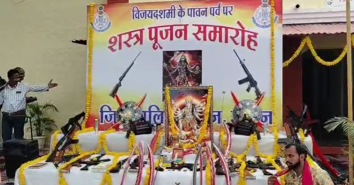 विजयादशमी पर देवास रोड पुलिस लाइन में शस्त्र पूजन
