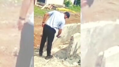 ड्रेनेज दीवार की गुणवत्ता चैक करने के लिए निगमायुक्त ने चलाए हथौड़े