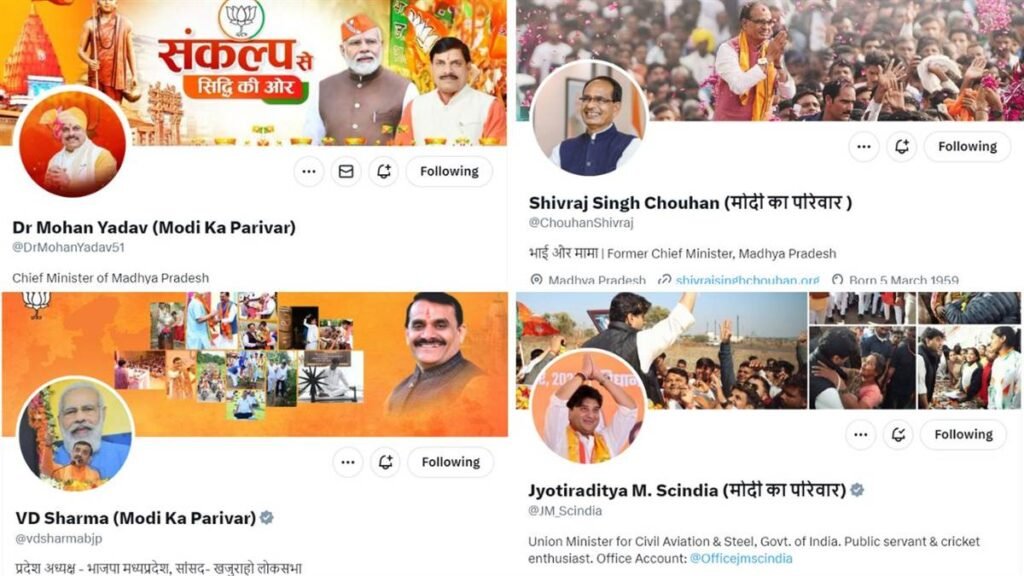 मध्य प्रदेश में मुख्यमंत्री मोहन यादव, भाजपा प्रदेश अध्यक्ष वीडी शर्मा, केंद्रीय मंत्री ज्योतिरादित्य सिंधिया और पूर्व मुख्यमंत्री शिवराज सिंह चौहान सहित अन्य भाजपा नेताओं ने अपने प्रोफाइल का नाम बदल लिया है।