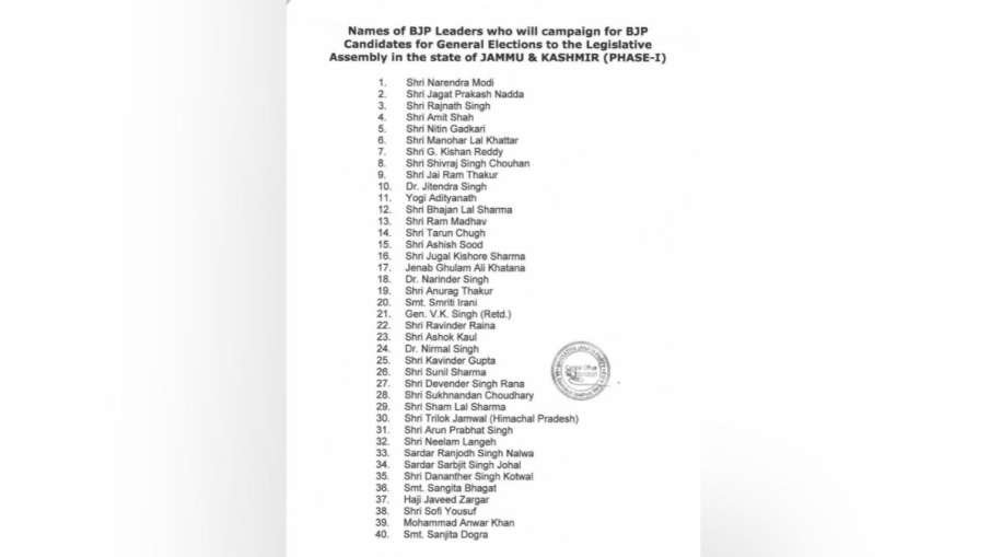 BJP ने जारी की जम्मू-कश्मीर चुनाव के लिए स्टार प्रचारकों की लिस्ट