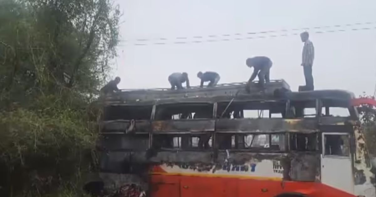 24 अक्टूबर: कुरनूल में एसी बस से बाइक टकराने के बाद आग लग गई थी। हादसे में 20 लोगों की जलकर मौत हो गई। 19 यात्रियों ने बस से कूदकर जान बचाई।