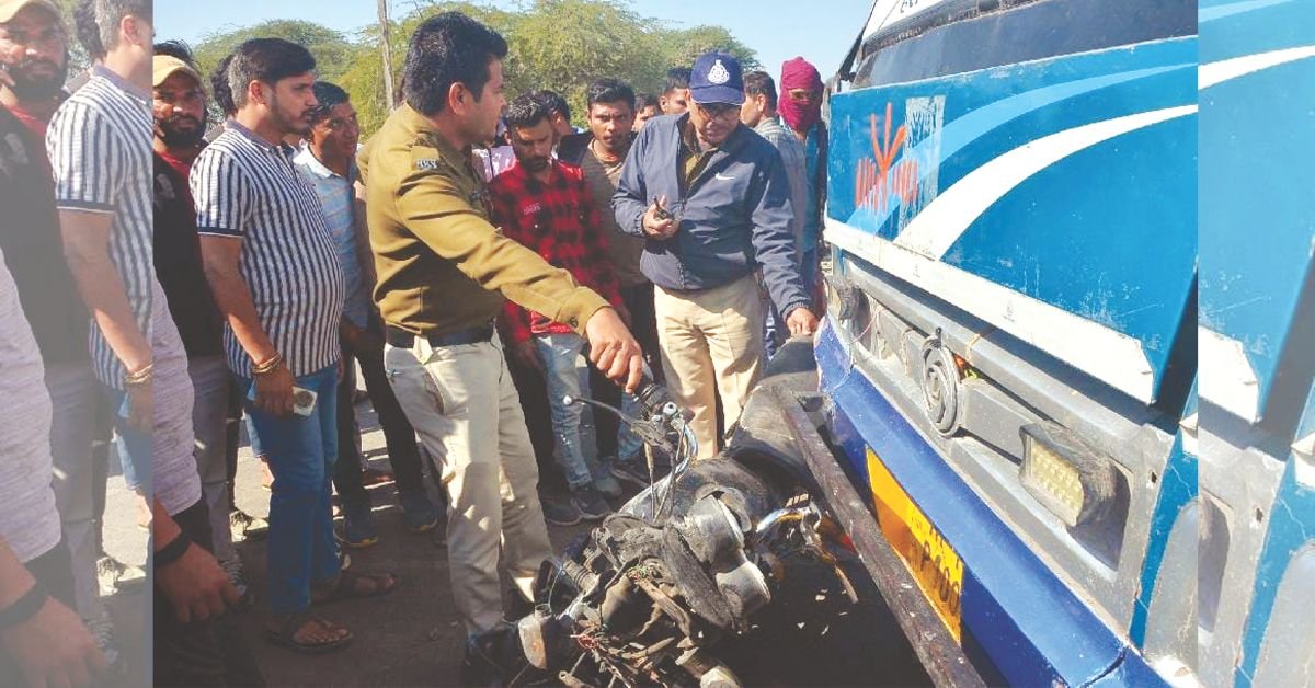 बस ने बाइक सवार को कुचला पैर काटने की नौबत