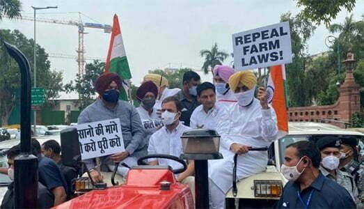 किसानों के समर्थन में ट्रैक्टर चलाकर संसद पहुंचे राहुल गांधी
