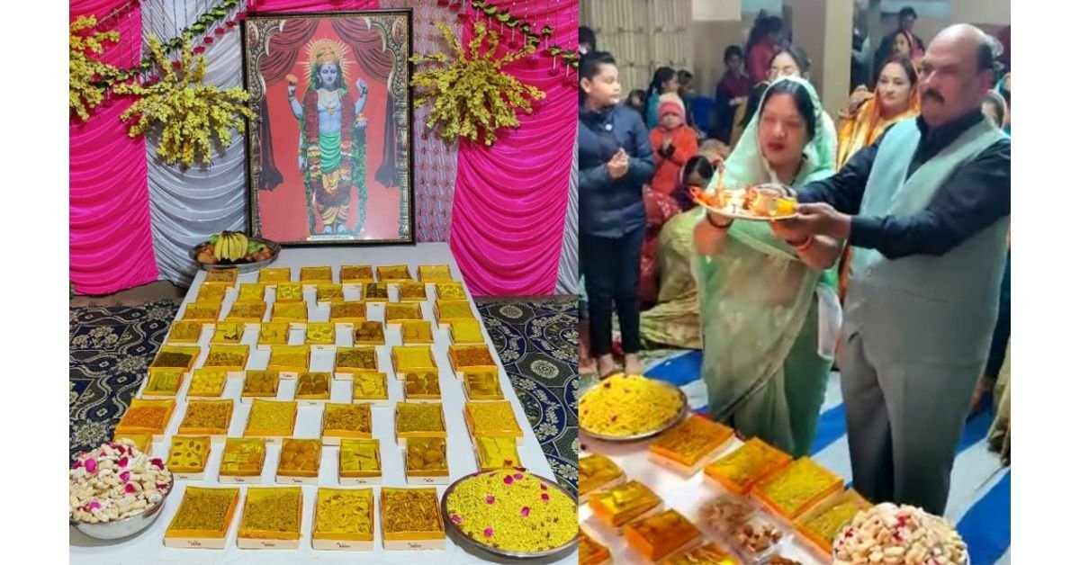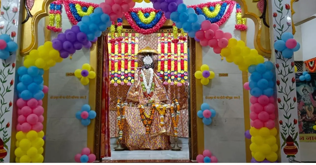 वृंदावन से आई पोशाक में सजे ठाकुरजी छप्पन भोग लगाकर महाआरती की गई