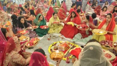 सज-संवरकर महिलाओं ने सजाई सुहाग की थाली