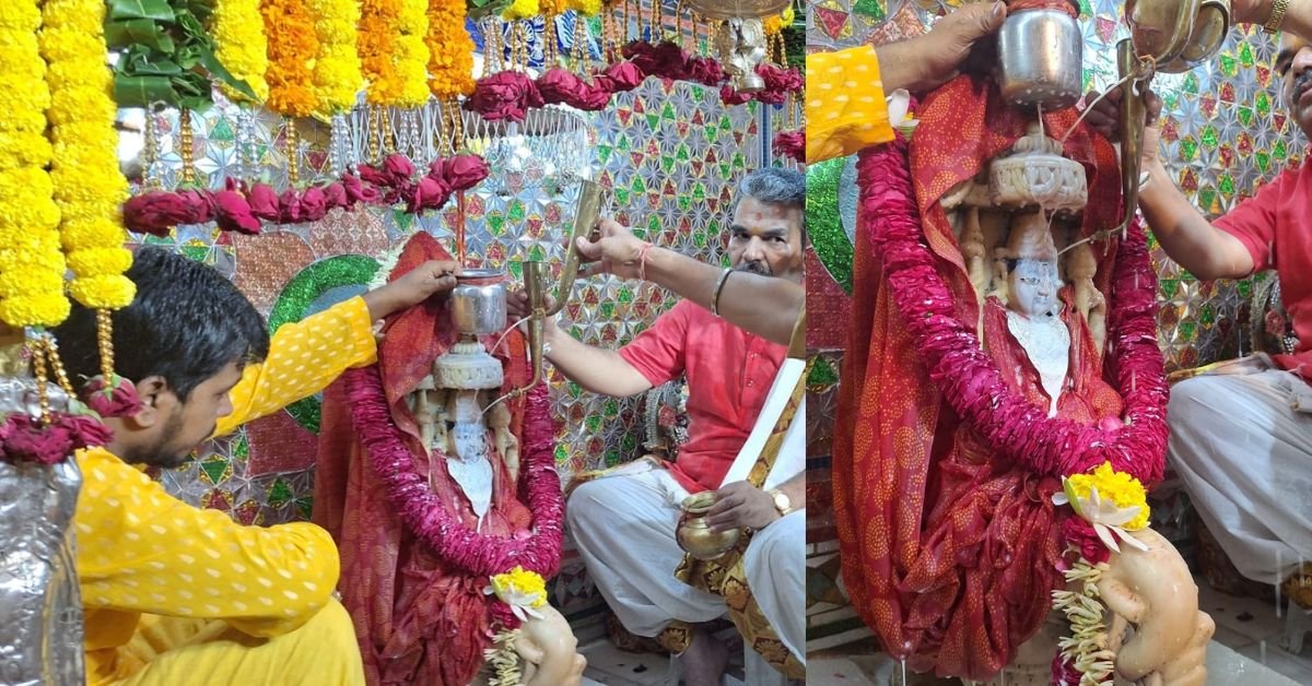 मंत्रोच्चार के बीच 2100 लीटर दूध से मां गजलक्ष्मी का किया अभिषेक
