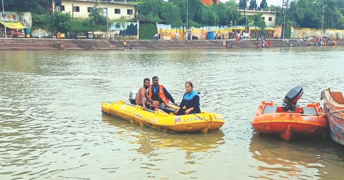 पुलिस और होमगार्ड जवानों के सामने उफनती नदी में कूद गया युवक
