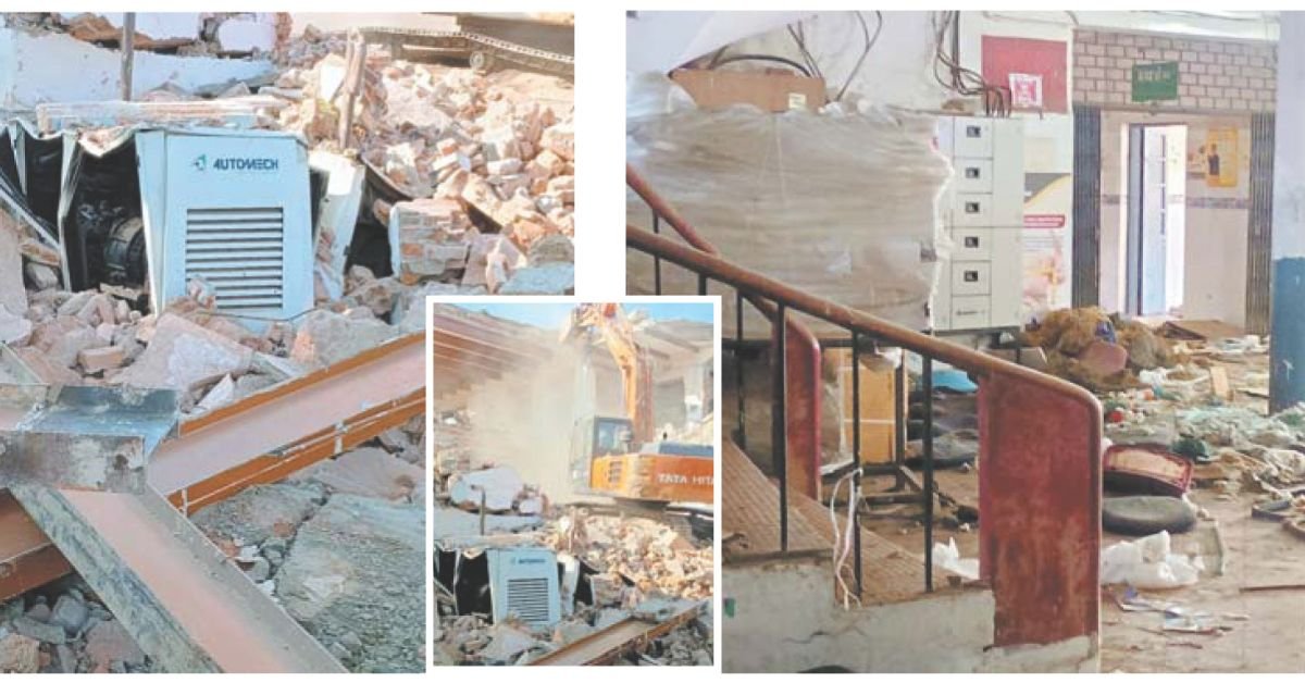जिला अस्पताल भवन के मलबे में दब गया दो लाख का जनरेटर