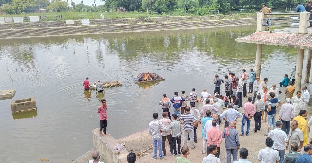 नदी किनारे चक्रतीर्थ पर अंतिम संस्कार हो रहा था और अचानक बढ़ गया पानी