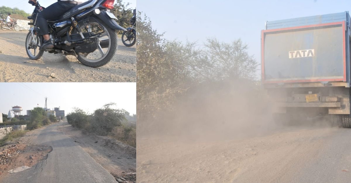 डेढ़ किमी तक गड्ढों की भरमार, धूल का गुबार