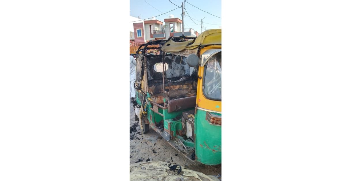 घर के बाहर खड़े ऑटो में बदमाश ने आग लगाई, राहगीर ने बताया