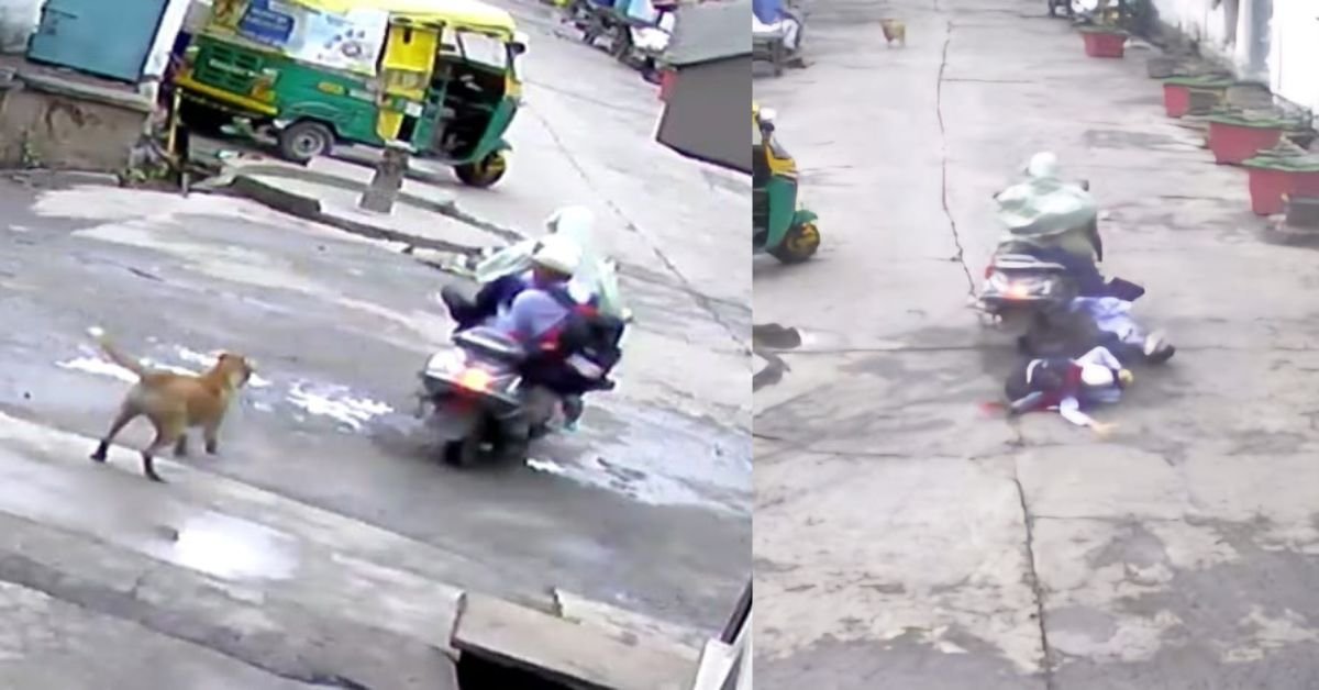 स्ट्रीट डॉग से बचने के लिये महिला ने स्कूटर तेज चलाया, पीछे बैठे दो बच्चे घायल