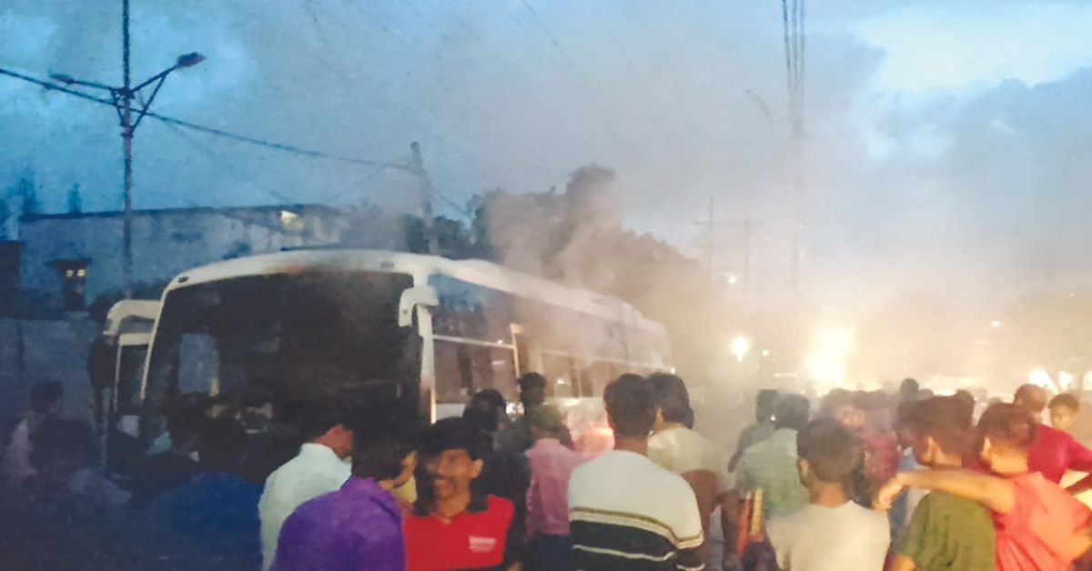 सेठीनगर में घर के बाहर खड़ी बस में आग लगी