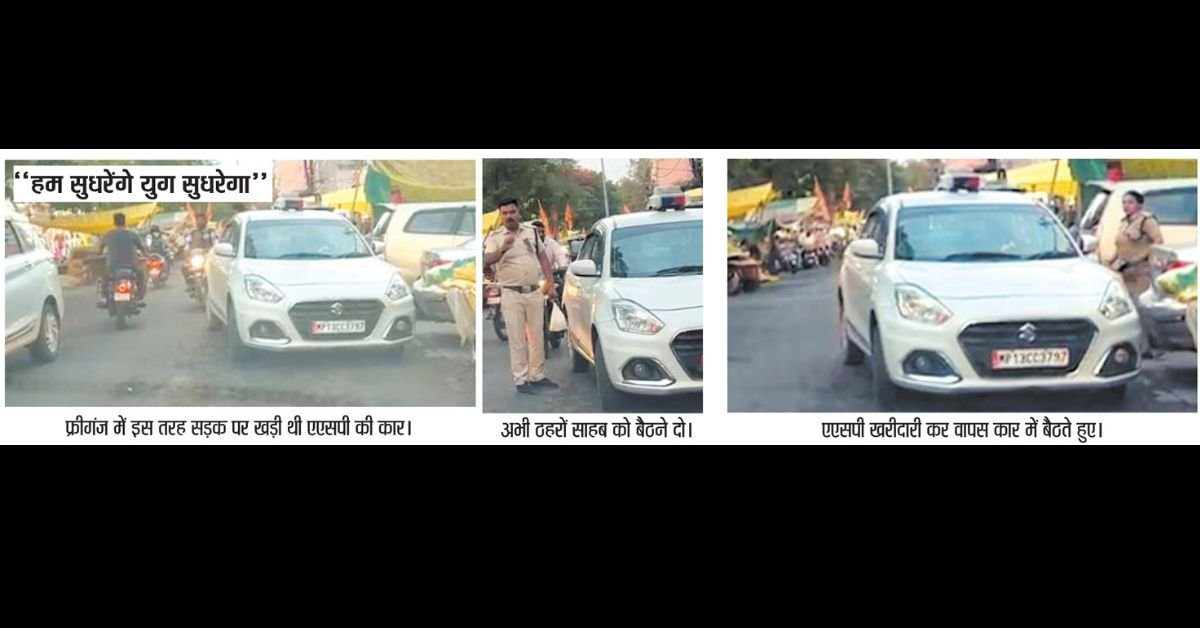 एएसपी की कार बीच सड़क में, लोगों के हार्न बजाने का असर नहीं