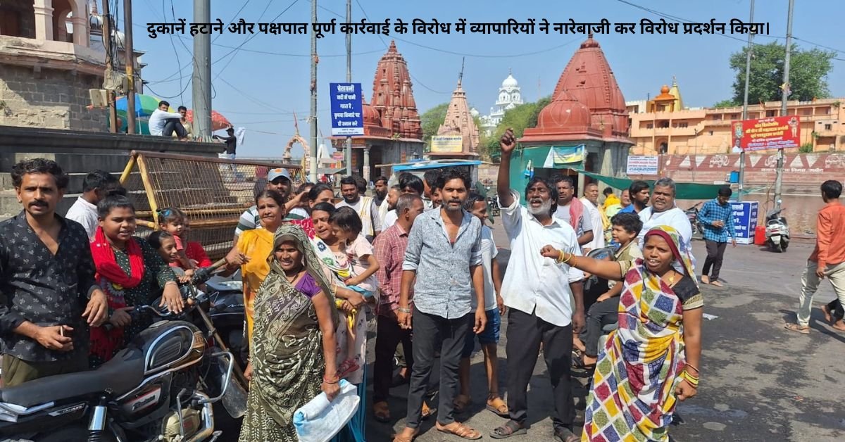 रामघाट की दुकानें हटाने को लेकर नगर निगम पर पक्षपात का आरोप