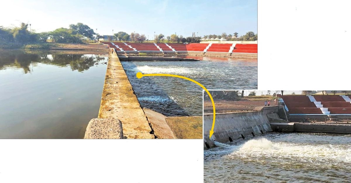 मिट्टी का स्टॉपडेम टूटने से फिर शिप्रा में तेजी से मिल रहा कान्ह का दूषित पानी