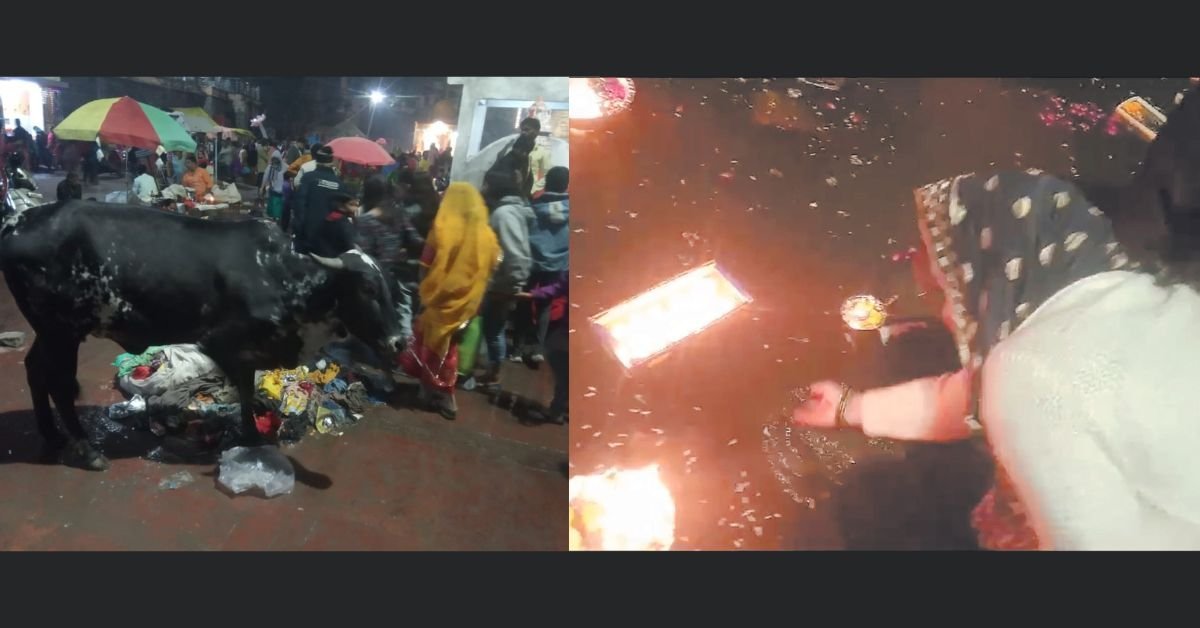 गंदगी और आवारा मवेशियों के बीच रामघाट पर दीपदान