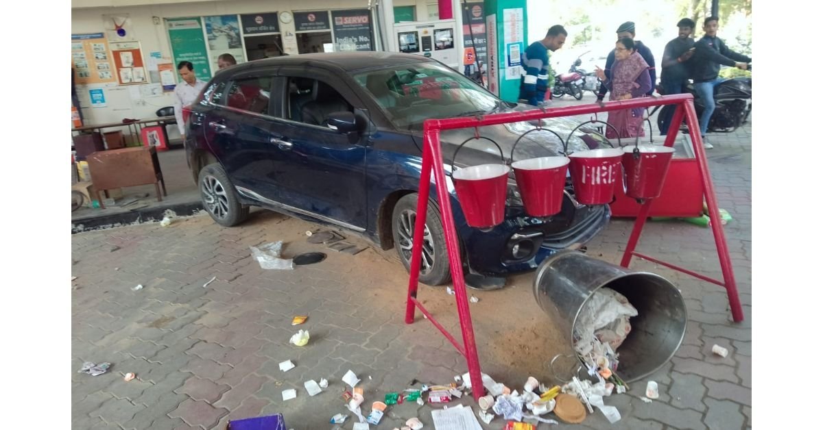 अनियंत्रित कार पेट्रोल पंप में जा घुसी