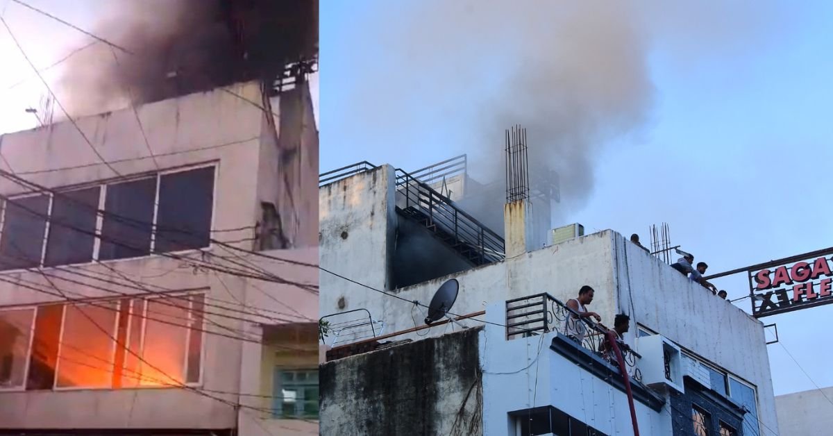 निजातपुरा में सागर फ्लेक्स पर आग बुझाने के प्रयास में दो संचालक झुलसे