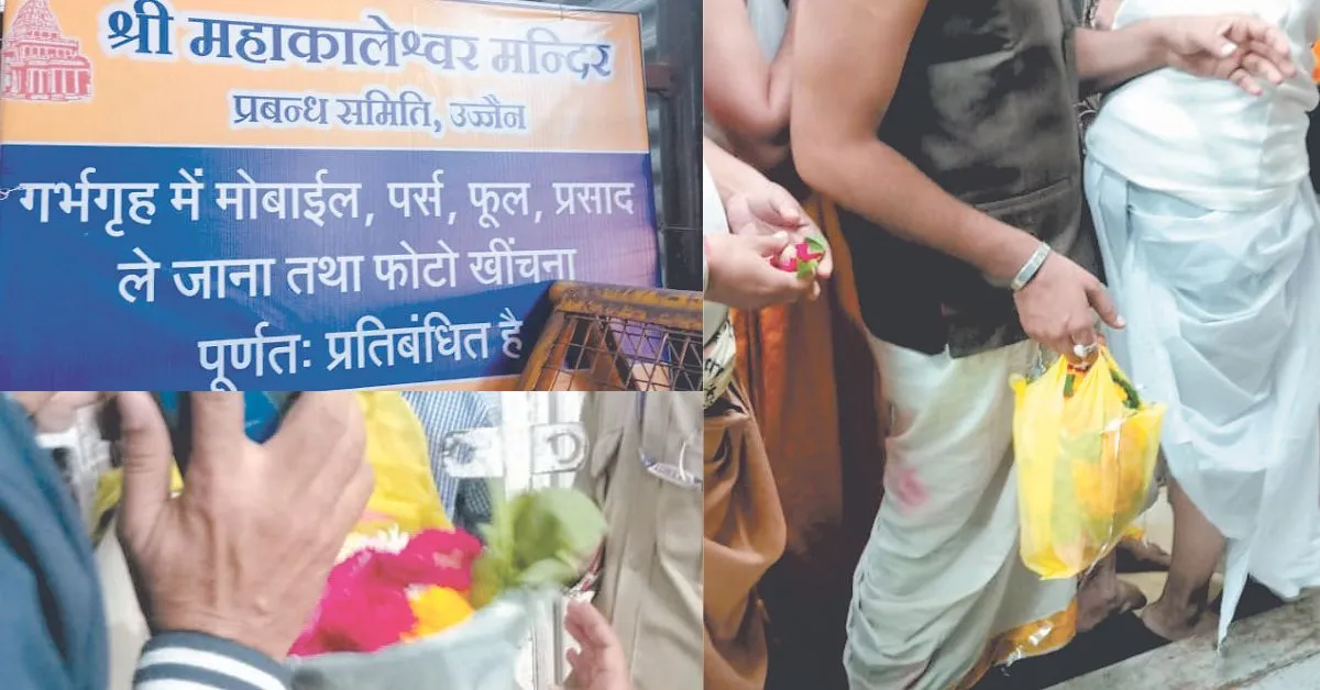 प्रतिबंध के बाद भी श्रद्धालु गर्भगृह में ले जा रहे फूल-प्रसादी