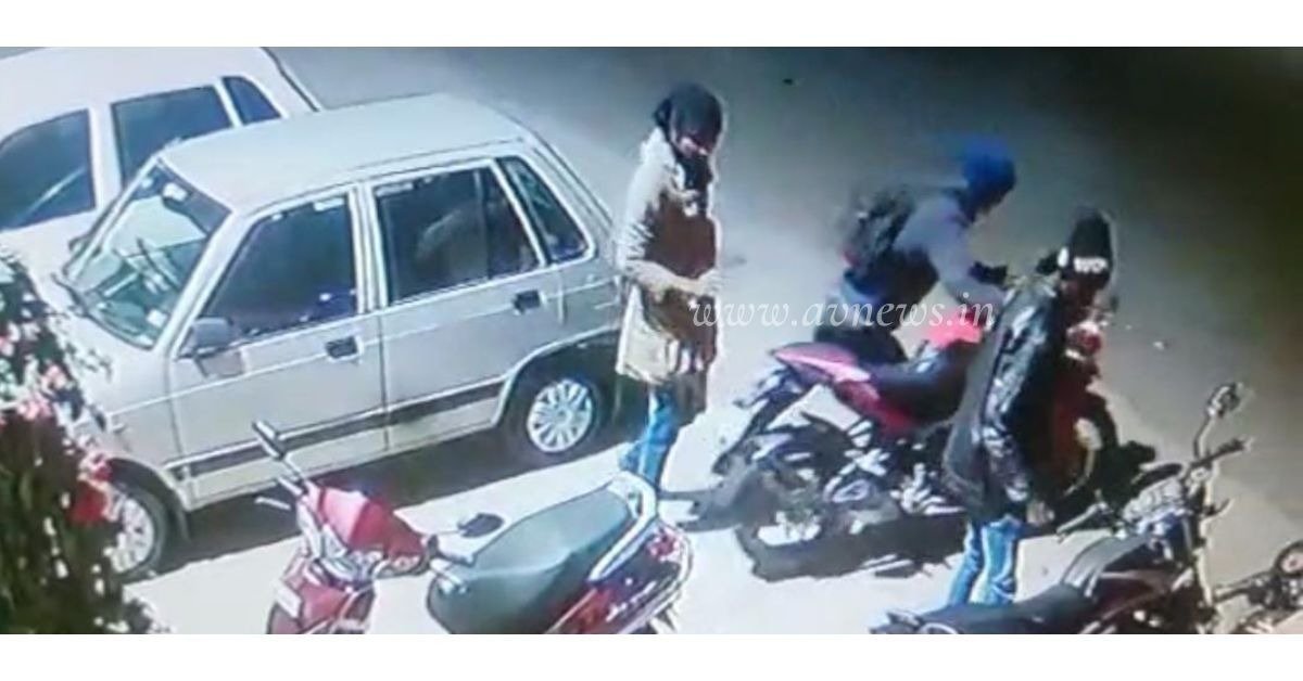घर के बाहर खड़ी बाइक चोरी, CCTV में दिखे बदमाश