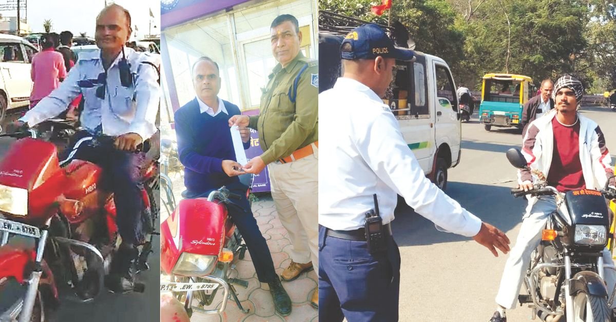 वीडियो वायरल होने के बाद कार्रवाई, चालान कटते ही हेलमेट में नजर आए