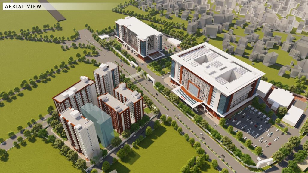 - बिल्डिंग: जी प्लस 8 बेड 550