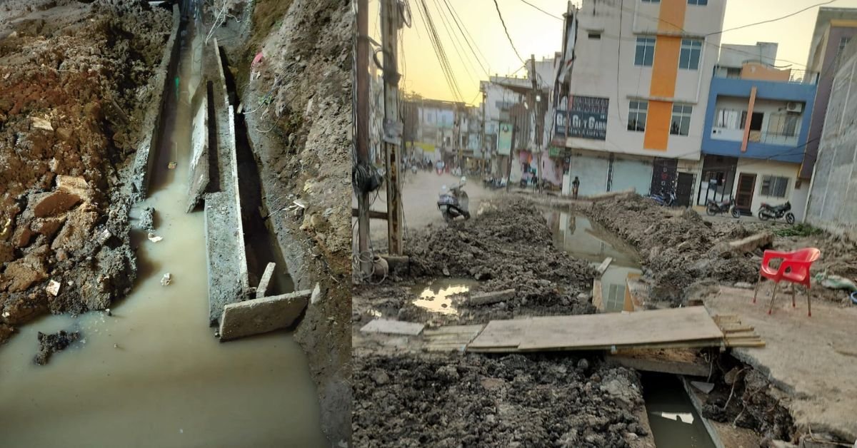 पूरा क्षेत्र खुदा पड़ा है। घर से बाहर निकलना मुश्किल हो रहा है। व्यापार की तो बात ही छोड़ दीजिए। धूल से लोग बीमार हो रहे हैं। हर घर में अस्थमा की शिकायत आ रही है। घनश्याम साहू, जय महाकाल किराना, निजातपुरा