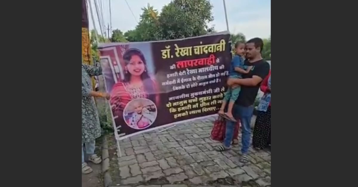 स्त्री रोग विशेषज्ञ डॉ. रेखा चांदवानी का पुष्पा मिशन अस्पताल के सामने आजाद नगर कॉलोनी में क्लीनिक है। यहां पर मंगलवार दोपहर बाद भोपाल के दीपेश मालवीय ने अपने परिजनों के साथ धरना दिया। हाथ में तख्ती लिए दीपेश मुख्यमंत्री से न्याय की मांग कर रहा था।