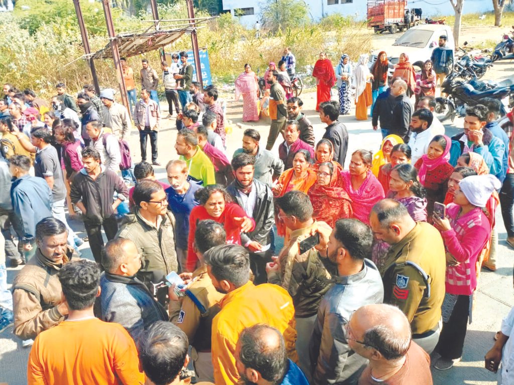 हादसे के विरोध और स्पीड ब्रेकरी की मांग को लेकर एमआर-5 पर चक्काजाम करते कॉलोनियों के रहवासी