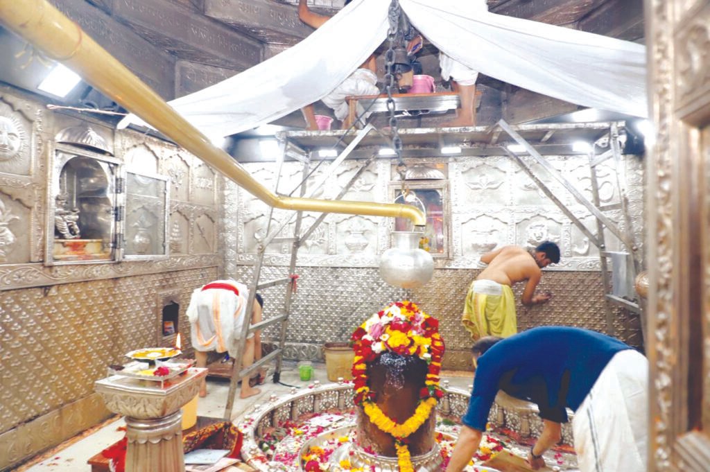 गर्भगृह में रुद्रयंत्र और रजत दीवारों की सफाई