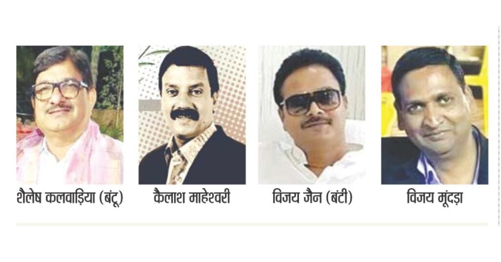 नामांकन दाखिल करने वाले शैलेष कलवाडिय़ा, कैलाश माहेश्वरी और विजय मूंदड़ा एक ही ग्रुप के हैं, जबकि विजय जैन कलवाडिय़ा के व्यापारिक साझेदार रह चुके हैं। सूत्रों के मुताबिक अंतिम समय में कलवाडिय़ा और मूंदड़ा नाम वापस लेंगे और अंतिम मुकाबला माहेश्वरी और जैन के बीच होगा। ऐसे में देखने वाली बात यह रहेगी कि पलड़ा किसका भारी रहेगा।