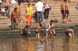इधर पीएचई द्वारा जहां नदी के पानी को बहाने का काम किया जा रहा है वहीं दूसरी ओर घाट की सीढिय़ों से पानी का लेवल कम होने के बाद काई जमी सीढिय़ों पर पैर रखते ही लोग फिसलकर घायल हो रहे हैं। सुबह उत्तरप्रदेश से परिवार के साथ शिप्रा नदी में स्नान के लिये पहुंचा व्यक्ति फिसलकर घायल हो गया। सिर में गंभीर चोंट लगने पर उसे होमगार्ड सैनिकों ने घाट से उठाकर उपचार के लिये अस्पताल पहुंचाया।