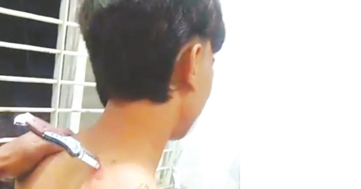 हमले के बाद किशोर की गर्दन में फंस गया था
