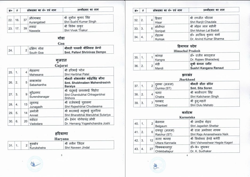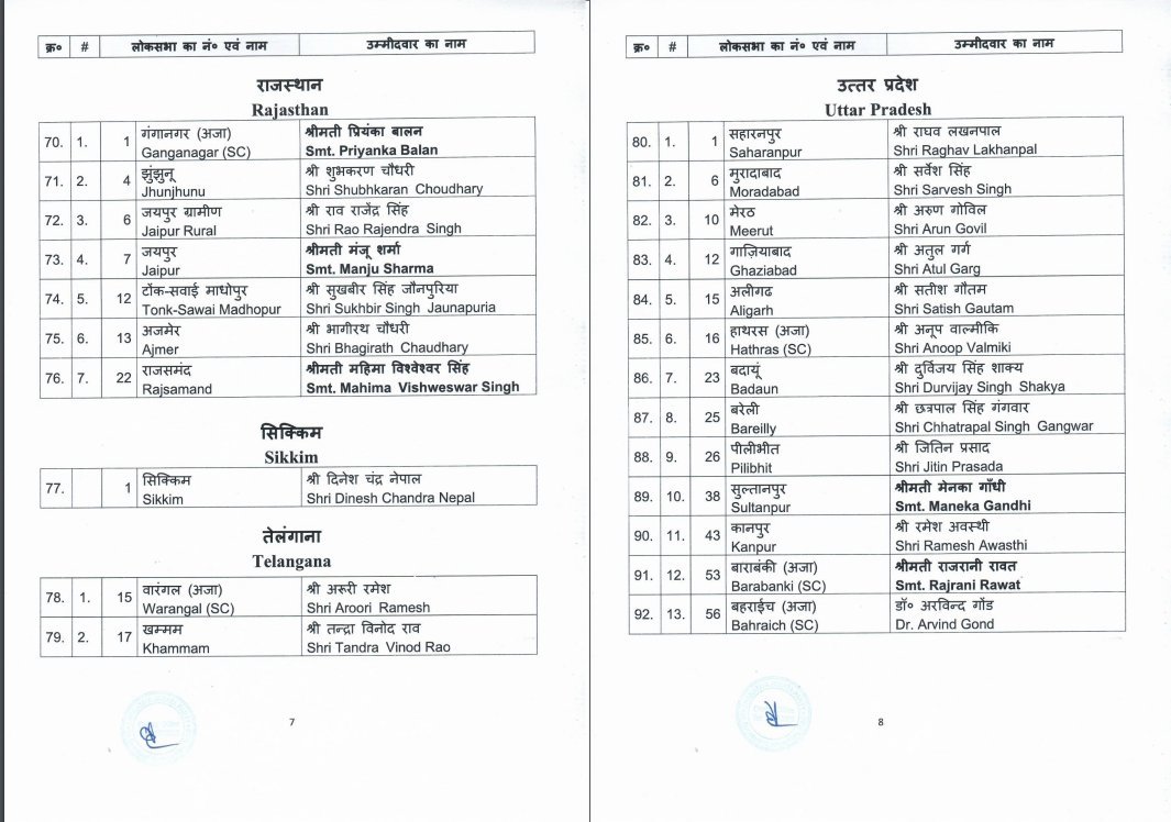 फिल्म एक्ट्रेस कंगना रनोट का है। उन्हें पार्टी ने हिमाचल प्रदेश के मंडी से टिकट दिया है। इसके अलावा टीवी के सुपरहिट श्रीराम अरुण गोविल चुनावी मैदान में उतरेंगे। उन्हें बीजेपी ने मेरठ लोकसभा से उतारा है। वहीं, इस लिस्ट में जिस बड़े प्रत्याशी का नाम कटा है। वह वरुण गांधी हैं। जिनका पीलीभत से टिकट काट दिया गया है।