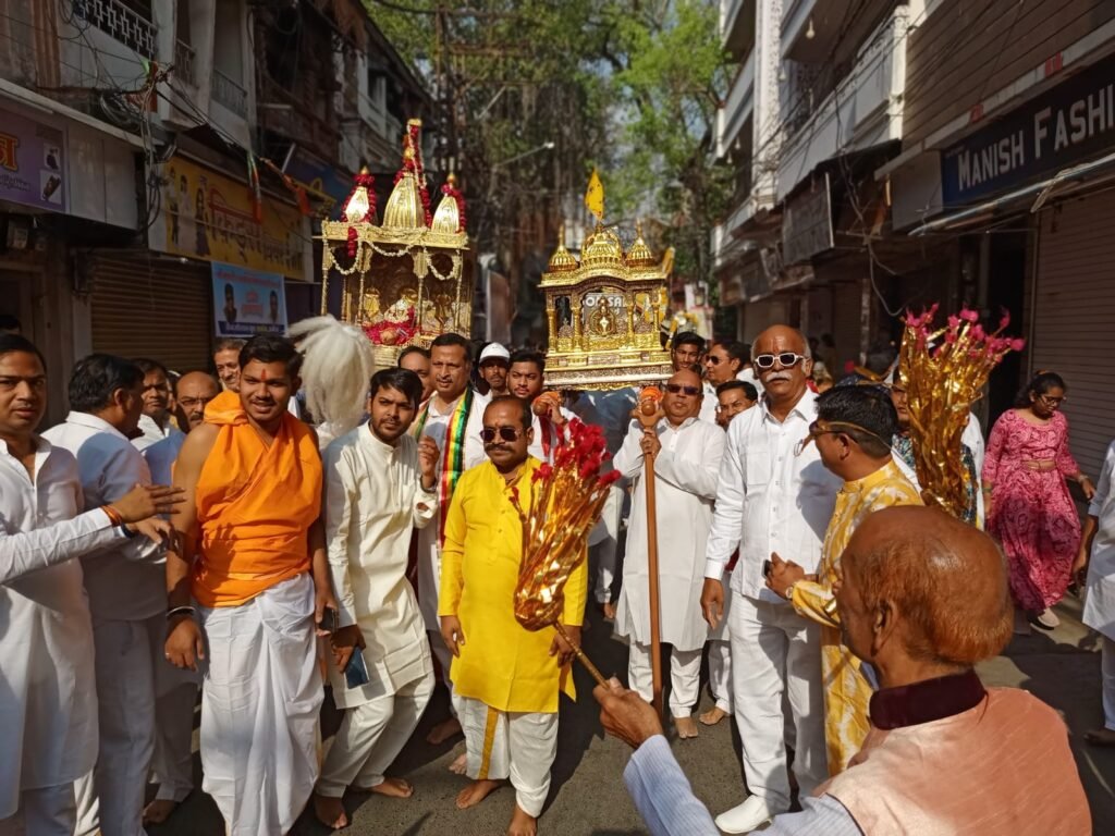 अक्षरविश्व न्यूज  उज्जैन।1008 तीर्थंकर श्री भगवान महावीर स्वामी की जन्म जयंती पर गुरुवार को भक्ति का उल्लास छा गया। अहिंसा के इस उत्सव में बड़ी तादाद में जैन समाजजन शामिल हुए और भगवान महावीर स्वामी की भक्ति में झूम उठे। सुबह 7.30 बजे नमकमंडी स्थित श्री चंदाप्रभु दिगंबर जैन मंदिर से शोभायात्रा की शुरुआत हुई। जिसमें चांदी की वेदी जी में प्रभु को विराजमान कर समाजजन अपने कांधे पर उठाकर निकलेे। प्रभु का एक रथ भी रहा जिसे समाजजनों ने खींचा। जहां-जहां से शोभायात्रा गुजरी ‘त्रिशलानंदन वीर की, जय बोलो महावीर’ के जयकारों से मार्ग गूंज उठा। विधायक अनिल जैन कालूहेड़ा के साथ बड़ी तादाद में महिला-पुरुषों और छोटे बच्चे भी इसमें शामिल रहे। रैली विभिन्न मार्गोंे से होकर पुन: नमकमंडी मंदिर जी पहुंची जहां श्रीजी के कलशाभिषेक हुए। इसके बाद जयसिंहपुरा स्थित श्री नेमीनाथ दिगंबर जैन मंदिर में सकल दिगंबर जैन समाज का सामूहिक वात्सल्य भोज हुआ।