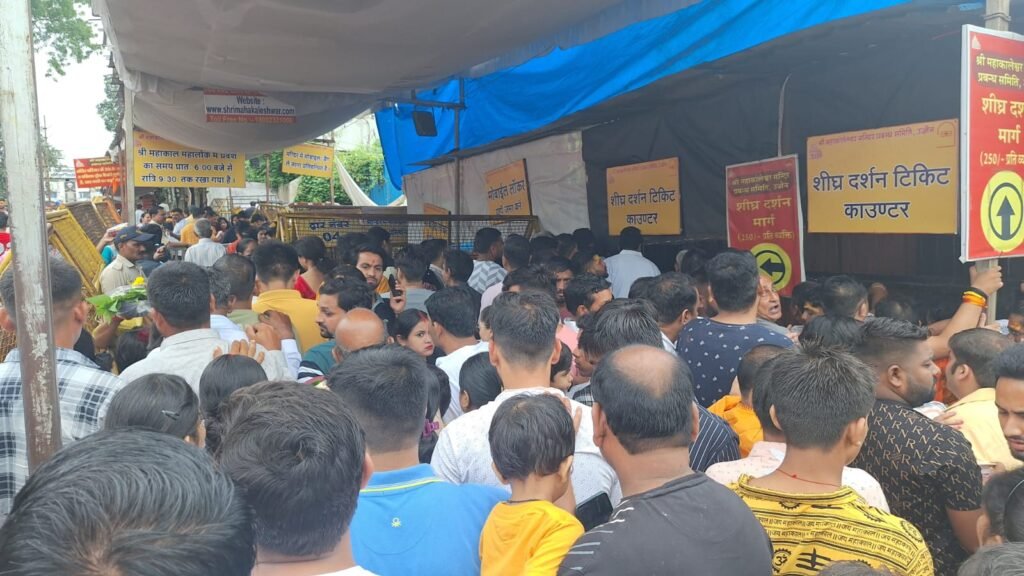 अक्षरविश्व न्यूज. उज्जैन यह भी संयोग ही है कि इस वर्ष सावन माह की शुरूआत भगवान शंकर के प्रिय दिन सोमवार से हो रही है और पहले ही दिन भगवान महाकालेश्वर के दर्शनों के लिये देश भर से हजारों की संख्या में श्रद्धालुओं का आगमन हो रहा है। मंदिर प्रबंध समिति द्वारा श्रद्धालुओं की सुविधा और क्राउट मैनेजमेंट के मद्देनजर दर्शन व्यवस्थाएं की हैं जिसका परिणाम रहा कि दोपहर 12 बजे तक मंदिर में 2 लाख श्रद्धालु दर्शन कर चुके थे जबकि भस्मार्ती की चलित दर्शन व्यवस्था में भी 50 हजार लोगों ने भगवान के दर्शनों का लाभ लिया।