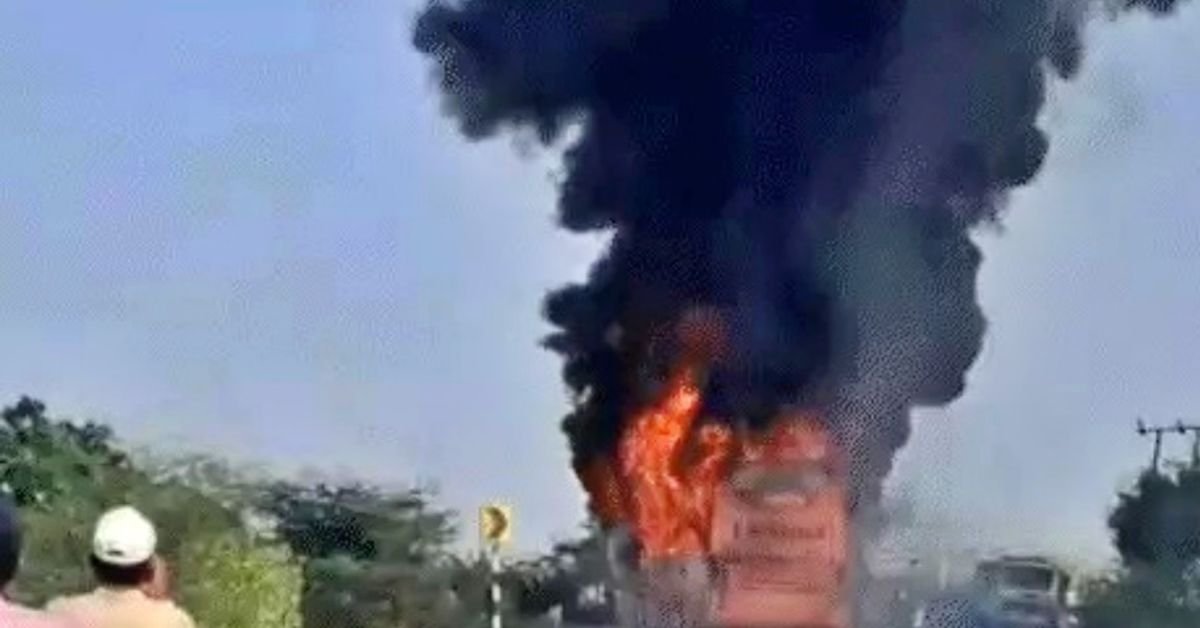 राजस्थान के जैसलमेर में जैसलमेर-जोधपुर हाईवे मंगलवार दोपहर 3.30 बजे चलती एसी स्लीपर बस में आग लग गई। देखते ही देखते आग ने भीषण रूप ले लिया। बचने के लिए लोग चलती बस से कूद गए।