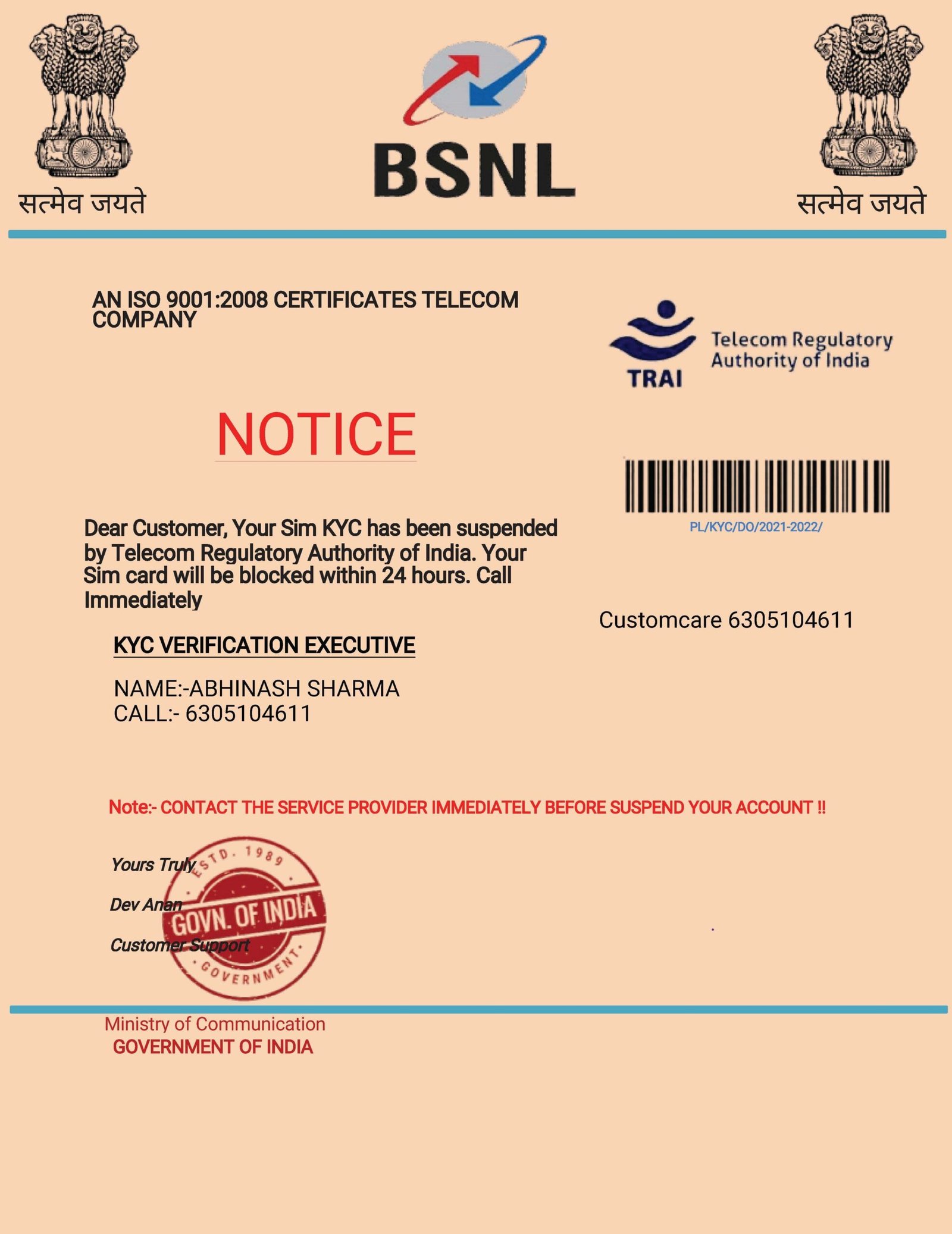 बीएसएनएल कस्टम केयर ने कहा साइबर फ्रॉड है