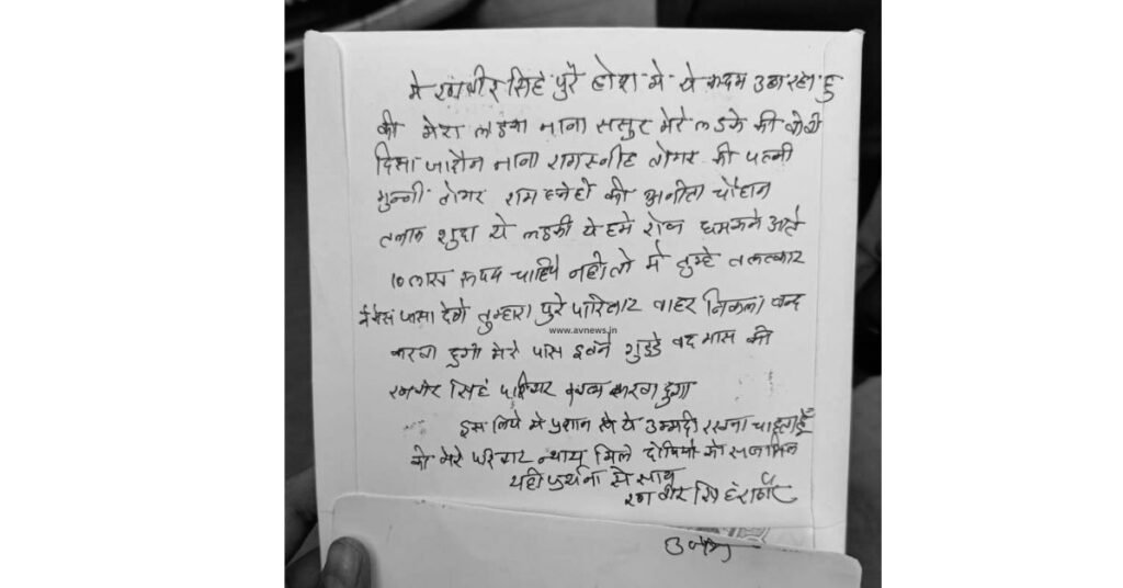 सुसाइड नोट में आत्महत्या का कारण और चार लोगों के नाम लिखे