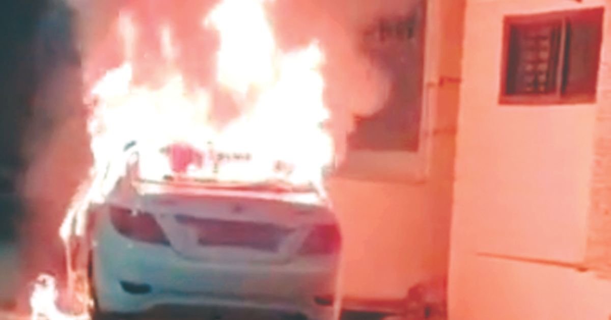 साड़ी कारोबारी की कार में एक बदमाश ने आग लगाई, दूसरा बनाता रहा वीडियो
