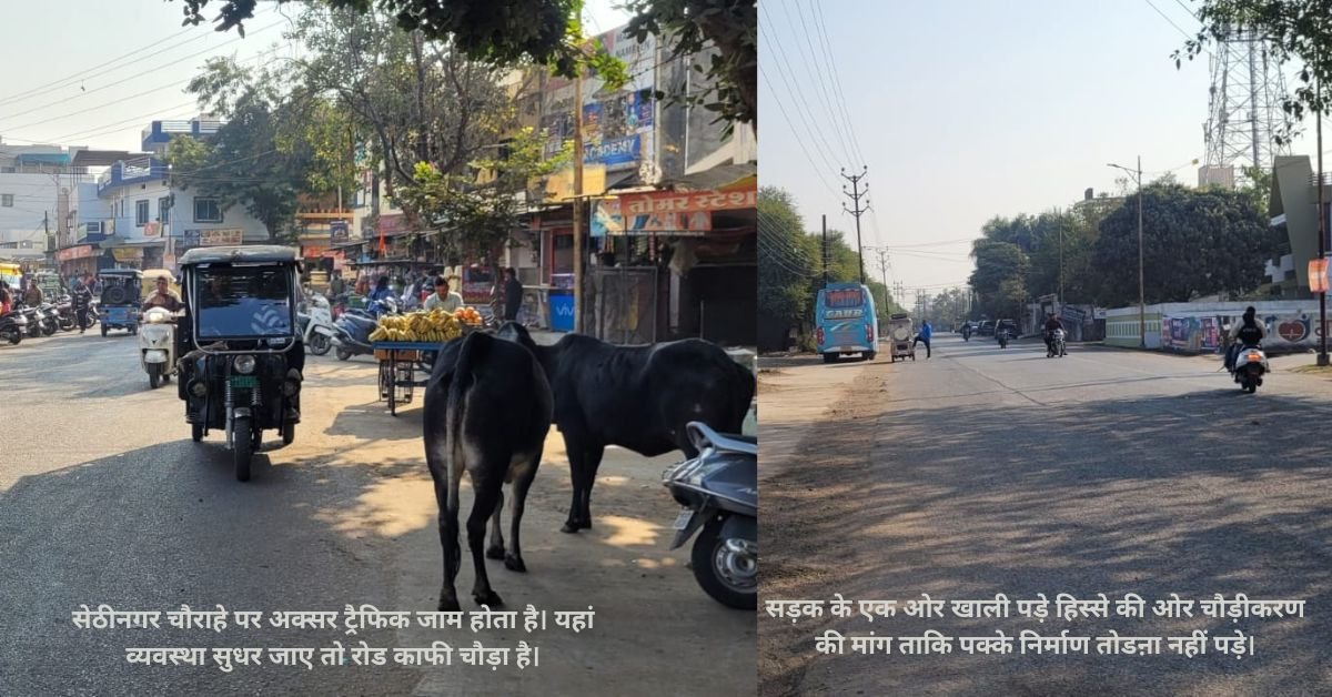 सेठीनगर चौराहा अतिव्यस्त है। यहां दोनों ओर वाहन व्यवस्थित कर ट्रैफिक व्यवस्थित कर दिया जाए तो जाम की स्थिति नहीं बनेगी।